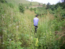 (5)貯水池から農地までパイプを通し、畑の各所へスプリンクラーを取り付けるなどのプロセスを経て、ようやく無農薬有機栽培の準備が整います。 | (6)育ちを見ながら技術指導を受けます。 |