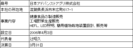 | 営業者 | 日本アドバンストアグリ株式会社 | |||
