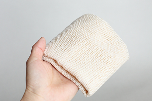 さて、SAVON de SIESTAの石鹸を洗顔だけでなく全身にもお使いいただきたいという話でした・・・。そんな時におススメなのが、オーガニックコットン(有機綿)ボディタオルです。こちらはオリジナルではありませんが、創業間も無い頃からずっと販売させていただいています。とても良い使い心地です(確認していませんが、当社のスタッフは全員が使い続けているはずです)。