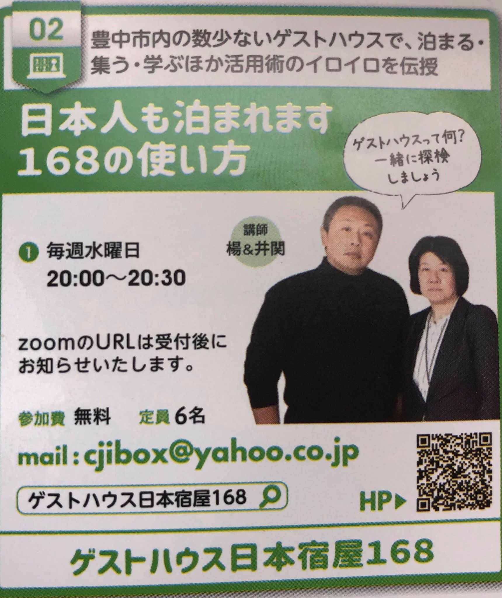 日本人も泊まれます。168の使い方(講師 楊&井関)を開催します。