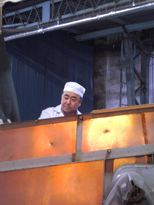 醸造所にも蒸し器の湯気がたっています。