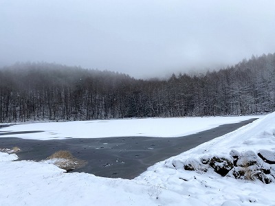 ちなみに、本日の寒波で御射鹿池も凍りました。
