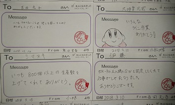 弊社では「Good Job Card」にメッセージを添え相手に伝えることで、