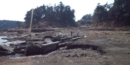 この辺りが工場が建っていた場所です(ガレキ撤去後に撮影) 歌津小太郎HP20120701より