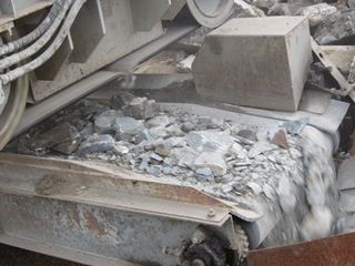 左手奥にコンクリートクラッシャー、そして砕いたコンクリート片をコンベアで持ち上げて、トラックの荷台に直接落とし込むのが手前の部分です。