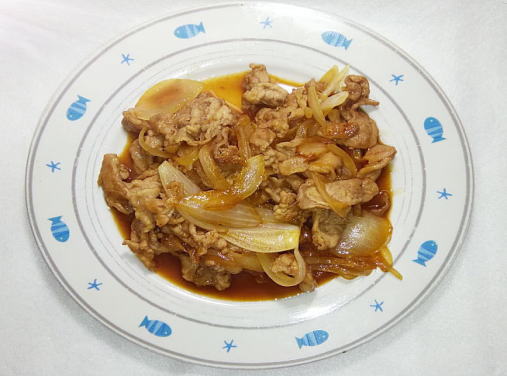 玉ねぎと豚薄切り肉は、別々に炒めて、鳥重のたれを入れて絡め、豚丼とします。
