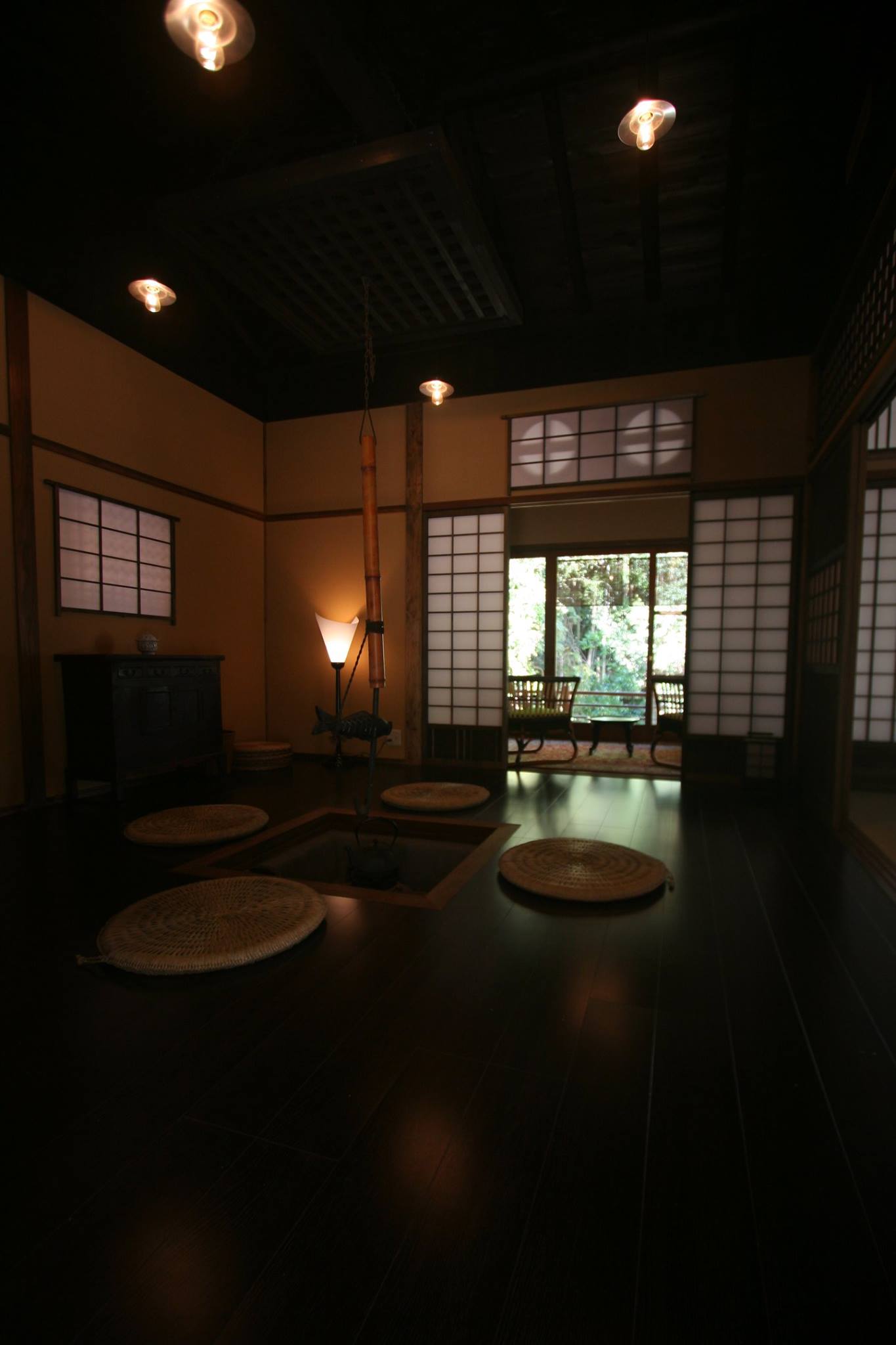 火を囲んで車座(輪)になって語る、日本人の原点ともいうべき囲炉裏を設えた和みの空間。